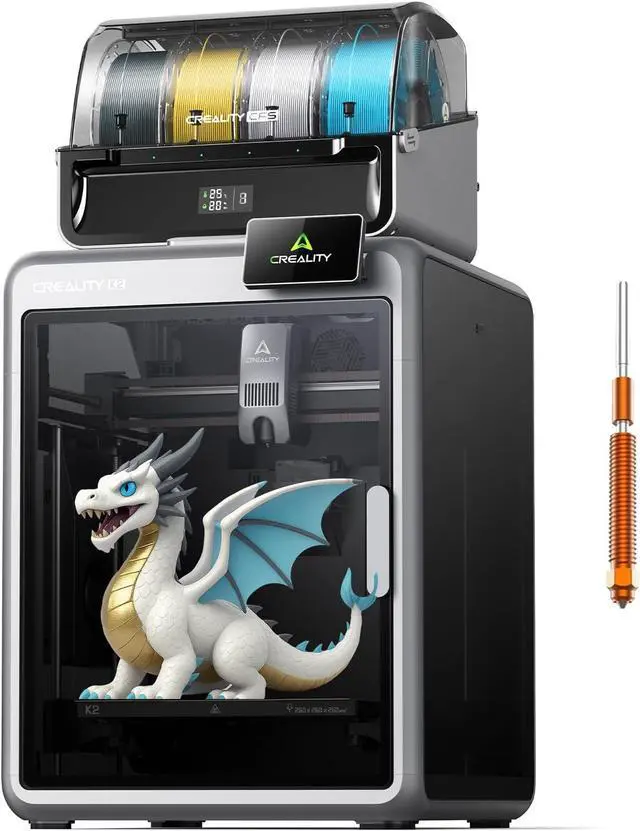 Next-Gen Multicolor 3D PrintingK2 Combo 3d printer comes with one CFS unit (expandable up to 4 CFS units) for up to 16 vibrant colors. Perfect for multi-material projects, prototypes, and artistic prints. Enjoy automatic wire switching and smooth, vivid color transitions.