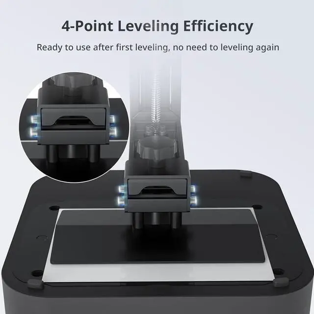 User-friendly FunctionThe 4-point leveling method is ideal for beginners, after the first leveling and tightening the 4 screws, no need to repeat leveling. Photon mono 4 can resume printing when power is restored, effectively reducing material and time wastage.
