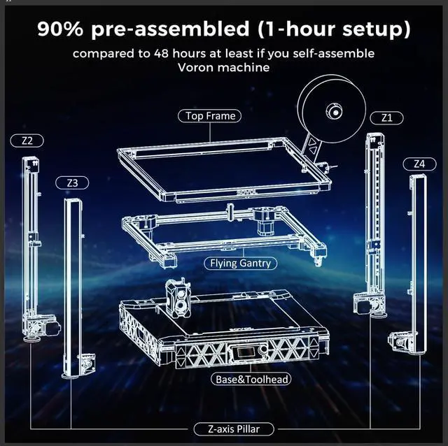 One Click Self-Check for Fully Auto Leveling: You can assemble SV06 ACE within 15 Mins without any skills. Klipper is equipped with a 64-bit chip for powerful computing performance.One Click Self-Check ensuring your assembly is correct and all components are functioning properly. Effectively reducing spaghetti monsters. Say Goodbye to manual leveling from now.