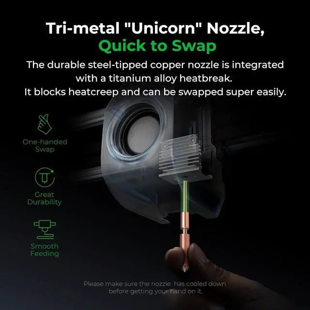 Tri-metal ""Unicorn"" Nozzle, Quick to SwapThe nozzle and throat adopt an all-metal integrated design, and the nozzle tip is made of hardened steel, which ensures smooth material discharging, long service life, and is easy to disassemble and maintain.