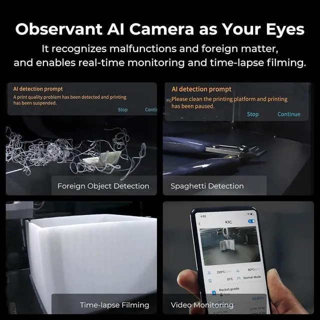 Creality K1C 3D Printer, 600mm/s High-Speed Auto Leveling Clog-Free Robust Direct Extruder K1 SE Upgraded 3D Printer with AI Camera 300°C Printing Silent Mode Support Carbon Fiber Filaments