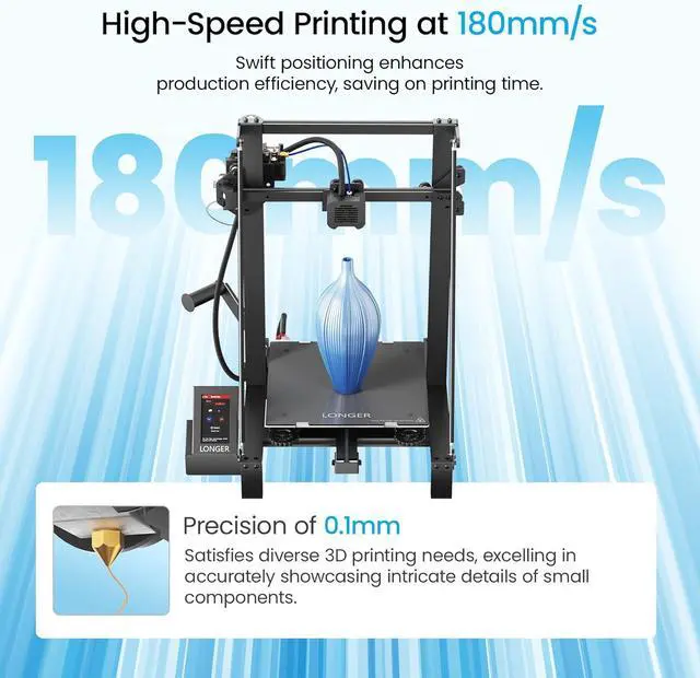 90% Pre-assembled with Stable Triangular StructureThe Upgraded Longer LK5 Pro 3d large printer is 90% Pre-assembled with build size of 300*300*400mm. Plus the reinforced design of diagonal rods form a stable triangular structure, which can effectively reduce vibration and achieve more stable printing.