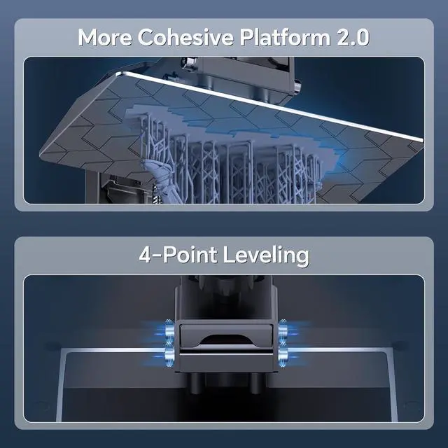 Upgraded Build PlateAnycubic Photon Mono 4 uses the Laser Engraving Platform 2.0, which optimizes pattern and grain depth, enhances model adhesion, and reduces the likelihood of model shedding and warping, further improving print success