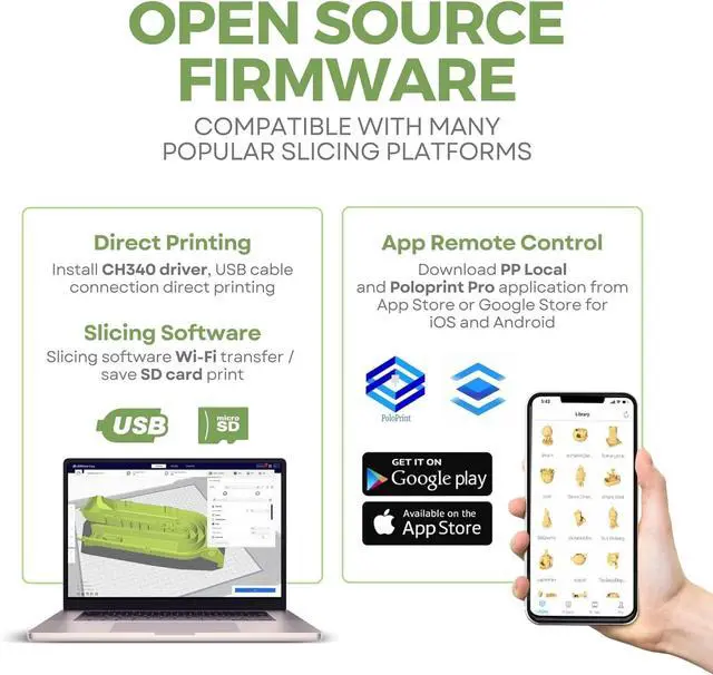 OPEN SOURCE PRINTING: Use MAC, Windows, or Linux and bring your imagination to life. The WiFI-capable printer is also compatible with a majority of slicing software including WiiBuilder, Cura, Simplify3d, and Slicr3d. Go ahead, dive into the world of 3D printing the easy way!