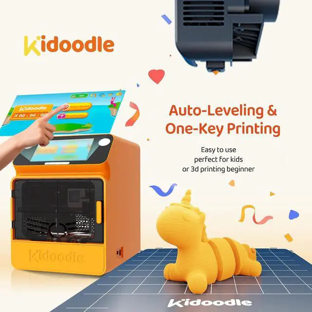 Easy to use Mini 3D Printers- Pre-assembled Kidoodle mini 3D printer (312*312*352mm) saves space and works out-of-the-box. Perfect for kids and 3d printing beginners with one-click printing.