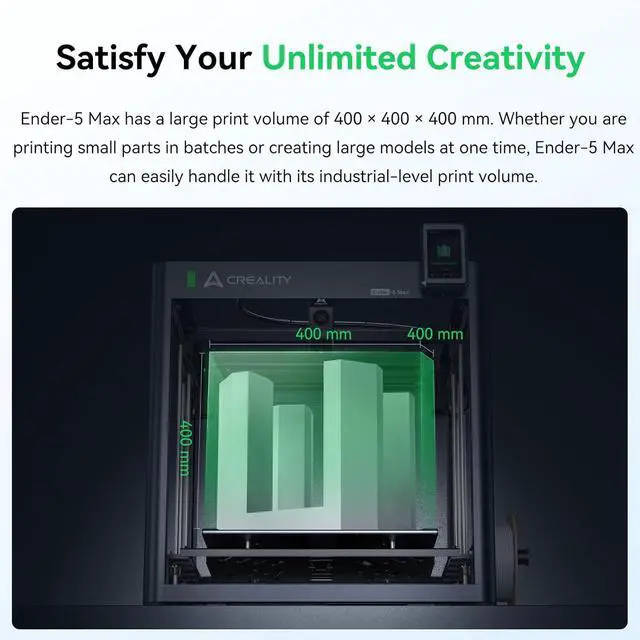Large Printing SpaceThe enormous 400 × 400 × 400 mm build volume of Ender-5 Max is rarely seen in today's professional bed droppers. Whether you are printing small parts in batches or creating a huge model in one piece, Ender-5 Max is the no-brainer for its industry-level print volume.