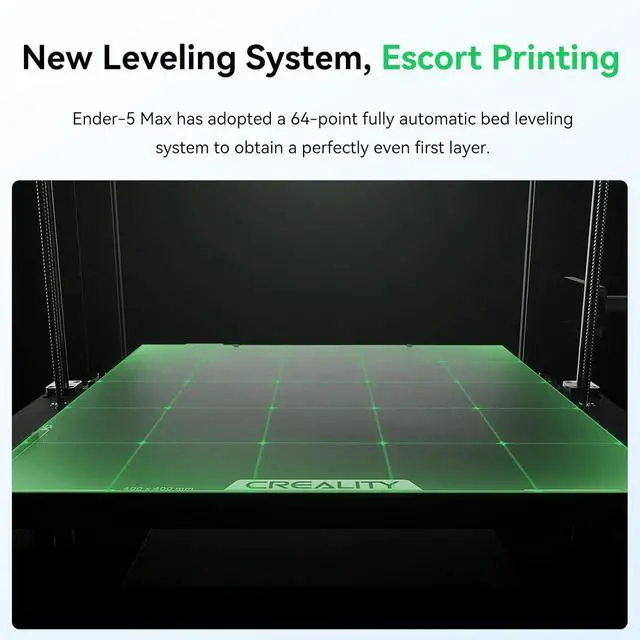 Perfect First LayerEnder-5 Max has adopted a 64-point fully automatic bed leveling system to obtain a perfectly even first layer. Your high-quality print will start from this great first layer without your intervention.