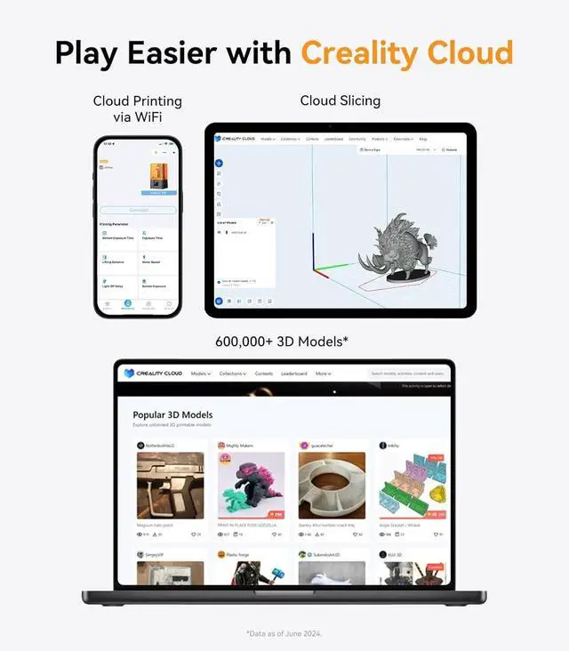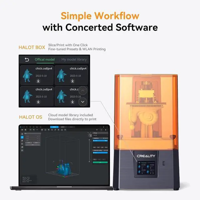 Multi-end Intelligent Collaboration: HALOT BOX software supports all kinds of parameter presets, and slicing and printing can be completed with one click; The Creality Cloud APP can download all kinds of models; The intelligent operation is simple and friendly; What's more surprising is that you don't need to pay anything to get the season card of CHITUBOX Pro