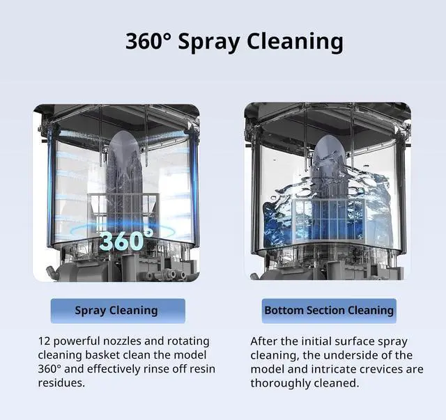 Efficient IPA utilizationThe dual-layer PP material cleaning basket supports washing with platform and rust-resistant. It is equipped with two adjustable heights of 150 mm and 250mm allowing printing platforms from 6.6 to 10.6 inches, maximizing alcohol usage efficiency.