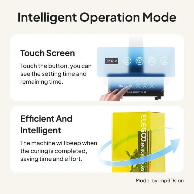 2. Dual function of washing and curing ELEGOO Mercury XS contains 1 washing Machine and 1 post-curing Machine, with the dual function of cleaning and curing to remove uncured resin of 3D printed models and optimized your print quality, making your post-processing simple and efficient.