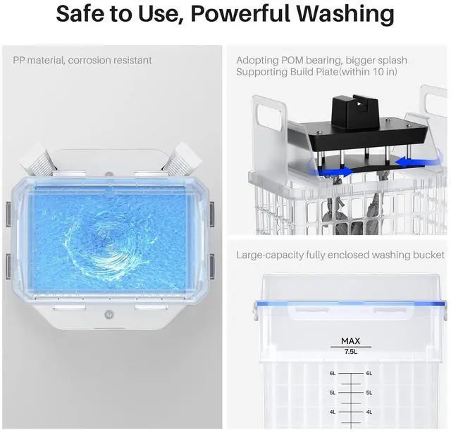 Large washing volumeWith an 7000ml large capacity sealed water tank, you can directly wash large models printed by ELEGOO Saturn and Mars 3, or clean parts in batches, which offers substantial time savings and improves your productivity.