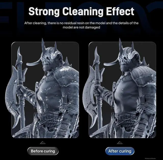 Dual function of washing and curing ELEGOO Mercury XS contains 1 washing Machine and 1 post-curing Machine, with the dual function of cleaning and curing to remove uncured resin of 3D printed models and optimized your print quality, making your post-processing simple and efficient.