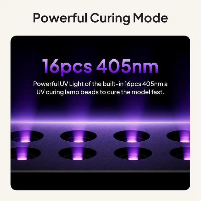 360° all-round exposureThe post-curing Machine adopts 2 L-shape light bars (each built-in 14 UV LED lights), and added 4 UV LED beads beneath the turntable. Work with 360°auto-rotating turntable and a handheld UV lamp that cures the nooks and crannies and interior of 3D prints, so that the entire model is cured thoroughly without dead ends.