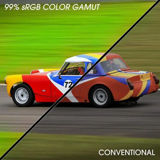 99% sRGB: With 99% sRGB, this monitor offers a wider color gamut than most conventional monitors, giving deeper colors and defining features.