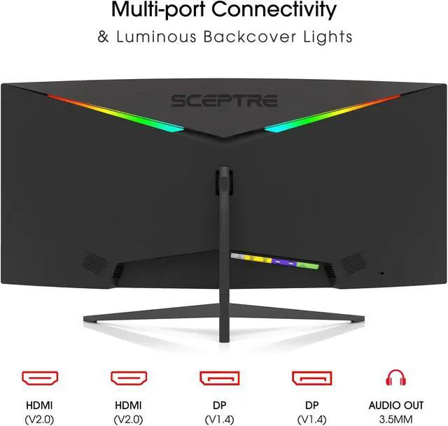 Sceptre 34-Inch Curved Ultrawide WQHD Monitor 3440 x 1440 R1500 up to 180Hz/165Hz DisplayPort x2 99% sRGB 1ms Picture by Picture, Build-in Speakers Machine Black 2025 (C345B-QUT168)