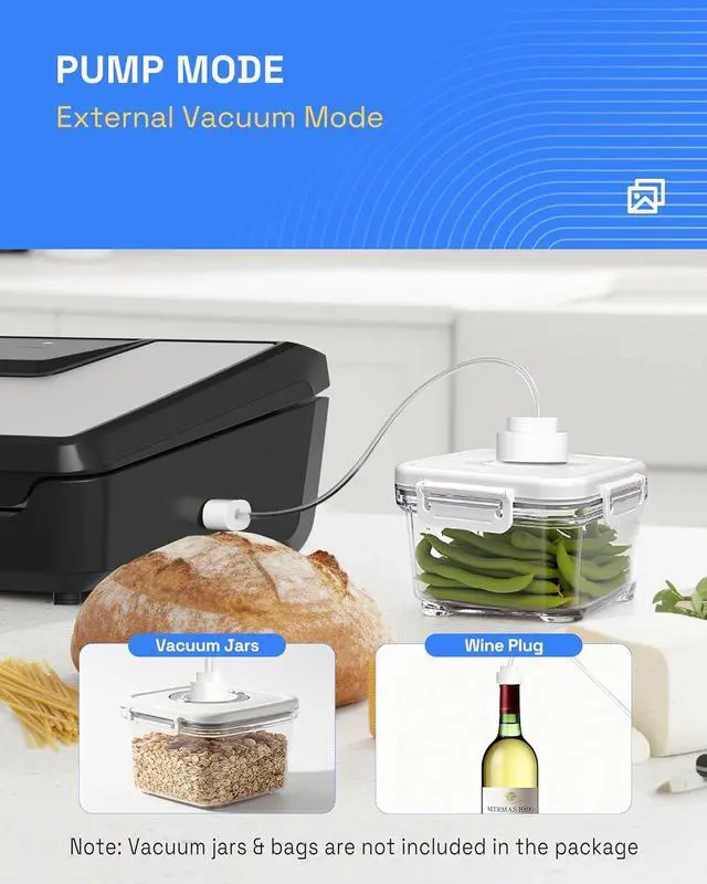 ALL-IN-ONE Food Vacuum SealerChoose from six modes: Strong and Dry, Soft and Dry, Wet, Seal, Vacuum, and Pump. This vacuum sealer is designed to handle everything from dry snacks to moist, juicy foods, giving you flexible control for meal prep, bulk buying and freezer storage.