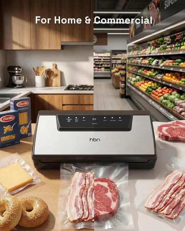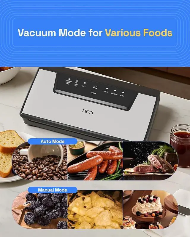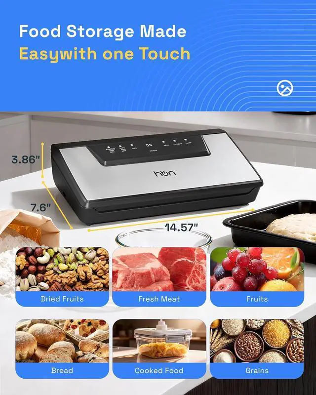 Automatic Hands-Free Lid & ONE-TOUCH StartPlace the bag and close the lid; the vacuum sealer locks and starts automatically with one touch, no need to press down by hand. Ideal for sealing meat, vegetables, and leftovers, and perfect for busy kitchens.