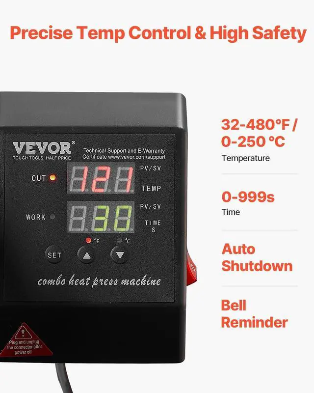 Easy to Operate: The newly upgraded time/temp independent control panel makes the heat transfer machine simple to use. Just set the temp, place the material, press down, and you're done. Beginners can easily get started and create quickly