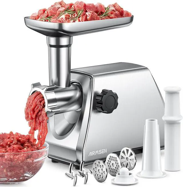 AIRMSEN Electric Meat Grinder & Mincer Heavy Duty Professional Stainless Steel Sausage Maker & Stuffer with 3 Plates, 2 Stainless Blades & Kubbe Kit Fast, Quiet, Easy to Clean for Home Kitchen Use