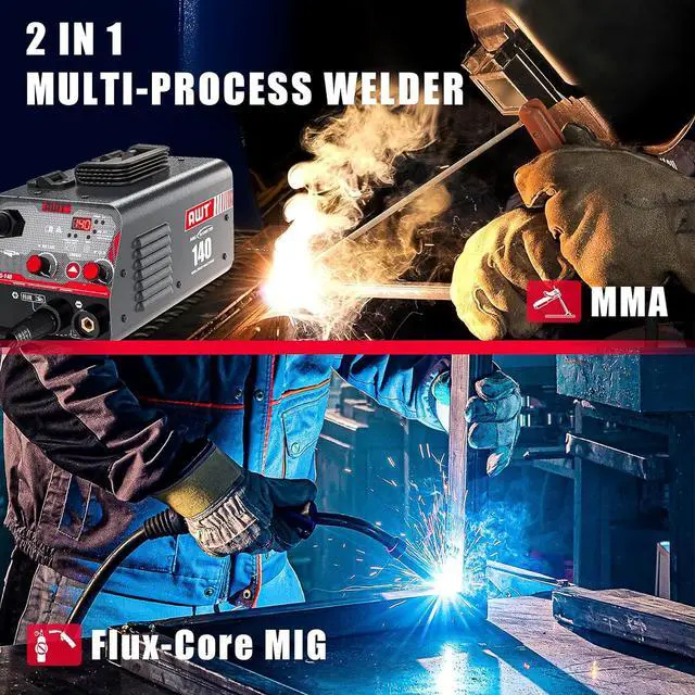 5-in-1 Multifuntion WelderThe AWT welder offers 5 processes: FLUX MIG, GAS MIG,HF TIG,PLASMA CUTTING,and STICK welding, providing a complete solution for various welding and cutting applications. With 110/220V dual voltage, MIG welder perfect for home DIY , farm work and construction sites.