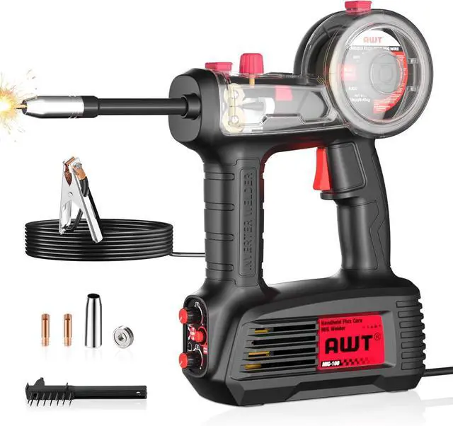 AWT 100A Handheld MIG Welder Machine,110V Flux Core MIG Welder Machine,Portable Gasless MIG Welding Machine,Hand Held Inverter Wire Feed Welder