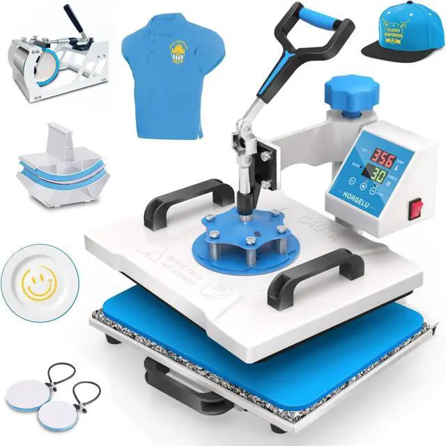 HORGELU 5 in 1 Heat Press Machine 12x15 Inch Heat Transfer Machine 360-Degree Swing Away Multifunction Digital Sublimation Combo Heat Press for T Shirt Mug Hat Plate for Commercial Home 110V