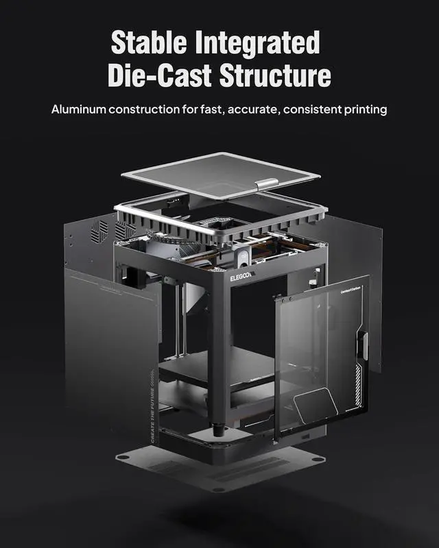 Rock-Solid Die-Cast Frame for Precision: Centauri Carbon 3D printer features a rigid, integrated die-cast aluminum frame that minimizes vibrations and maintains exceptional stability, even at high speeds. Combined with automatic vibration compensation and pressure advance, it ensures smooth first layers, and consistent, high-quality prints