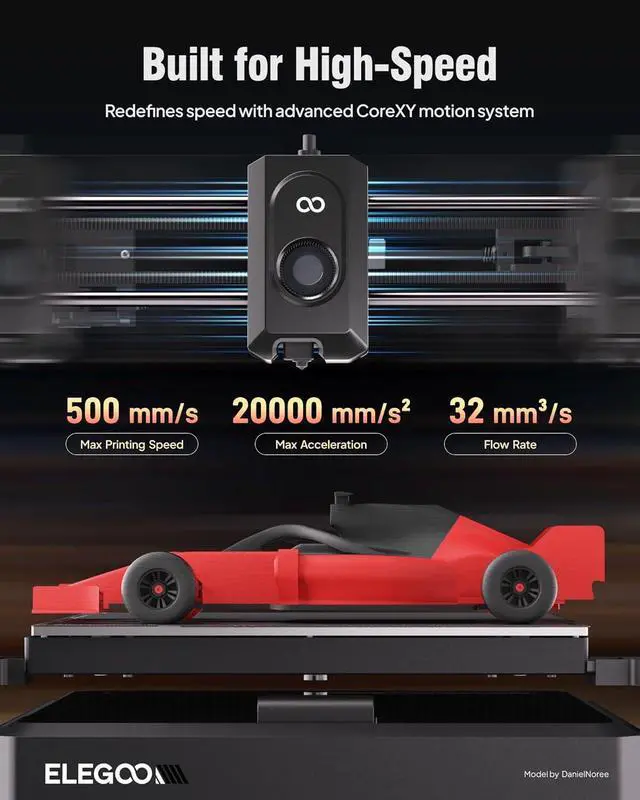 Built for High-Speed Printing: Unlock ultra-fast printing with its advanced CoreXY structure, achieving up to 500 mm/s print speeds and 20000 mm/s² acceleration. Combined with a high-flow hotend and powerful heated bed, you can produce large, detailed parts rapidly and reliably