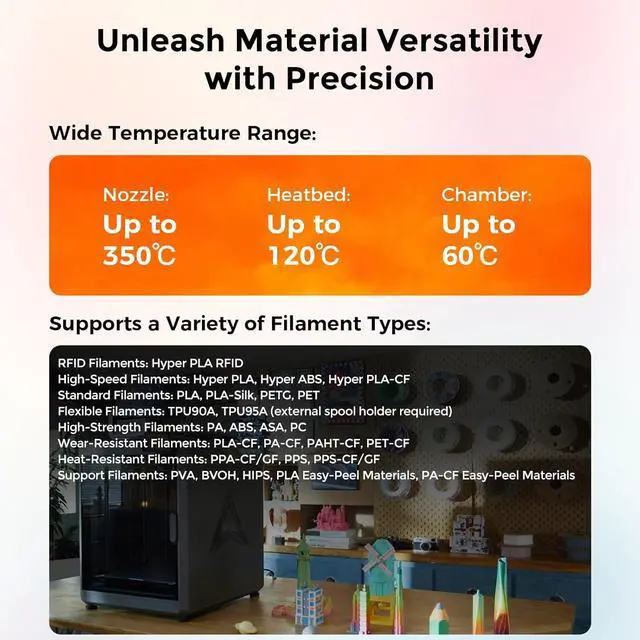 Spacious Build Volume: With a 350×350×350mm print area, you can create large models, intricate designs, or multiple parts in one go. The aerospace-grade aluminum alloy frame ensures stability for high-quality, accurate prints.