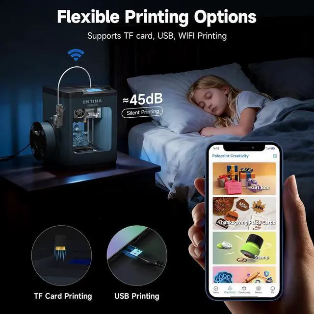 SMART 3D PRINTER: compact body, simple design, use with Poloprint Cloud, massive models, novice paradise, wifi printing, make 3d printing more convenient and intelligent, connect APP to realize online slicing and one-click printing,Beginners and kids can also use it quickly.