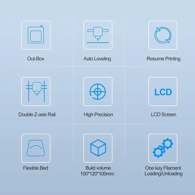 HUMANIZED DESIGN: In order to make it more convenient for different users to use the 3D printer, the printer adopts an auto leveling function, and the design of the dual Z-axis makes the printer run to replace the stable and reduce the error when leveling the bed, and improve the success rate of the printed model.