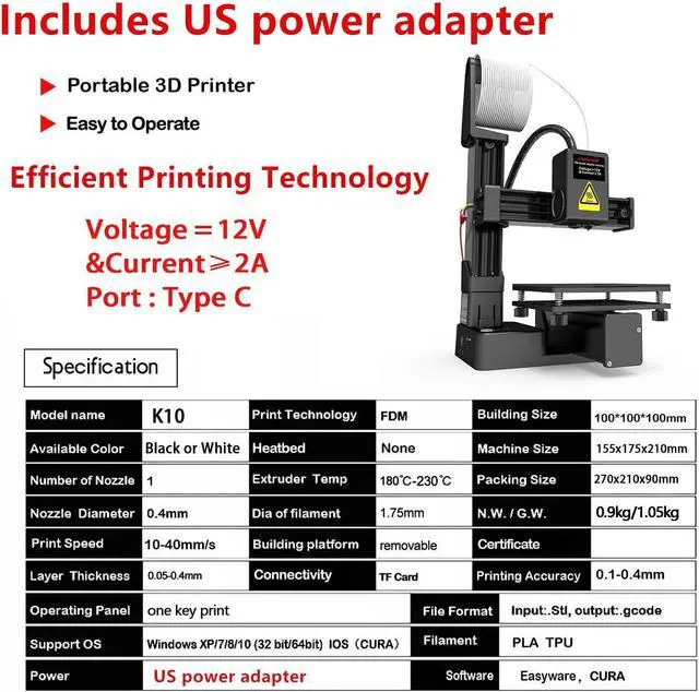 Versatile Filament Compatibility - Unleash your creativity with both PLA and flexible TPU (1.75mm). The reliable 0.4mm nozzle and precise 0.05-0.3mm layer thickness deliver detailed, smooth prints for all your projects, from toys to home decor.