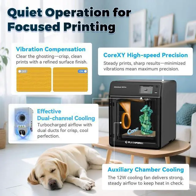 FLASHFORGE 3D Printer AD5M Pro with 250g PLA, 600mm/s High Speed CoreXY High Precision Printing, 280 Quick-Swap 0.4 & 0.6mm Hotend, 50dB Silence and Built-in Camera, Build Volume 220 * 220 * 220mm