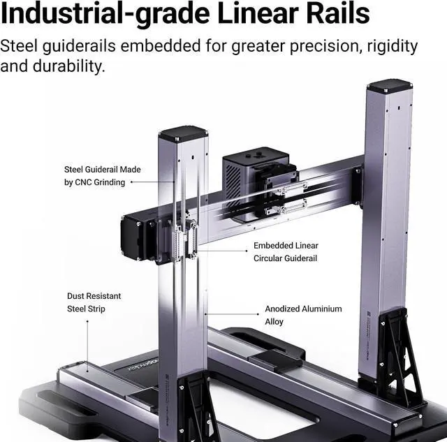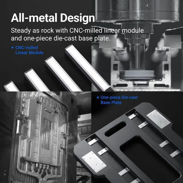 [All-Metal Design,Next Level]: We introduce industrial-grade transmission technology to desktop fabricationsteel guiderails made by CNC grinding at micron level. This leads to a significant raise in precision, rigidity and durability . Artisan 3D Printer also comes with an upgraded one-piece die-cast base plate in a larger size. Its as steady as a rock even during high-speed CNC machining.