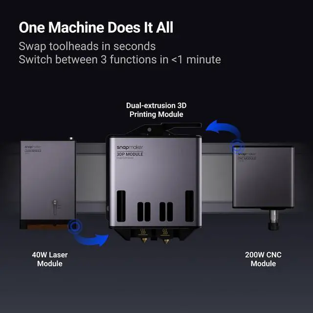 [To Make 3-in-1 Function for Every Passion]: One Machine Does It All. You can make Snapmaker Artisan 3D printer to 3-in-1 version with 3D printing,laser engraving&cutting and CNC Carving, and helps enhance efficiency with the modular and quick-swap design. Please note: This model only includes 3D Printing version. For 3 in 1 version with laser engraving/CNC carving, Please check "Bundles with this item" below the product title..