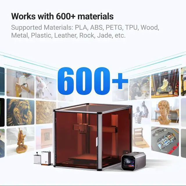 [Perfectly Supports 600+ Materials]: Snapmaker Artisan 3-in-1 3D Printer supports a wide range of materials across its 3D printing, laser engraving, and CNC carving functions. Use various filaments like PLA, ABS, PETG, TPU, and Nylon with the dual extruder, including easy-to-remove supports. Handle wood, metal, leather, and acrylic with different laser modules, and tackle precision machining on tough materials with the 200W CNC Module and 4mm CNC bits.