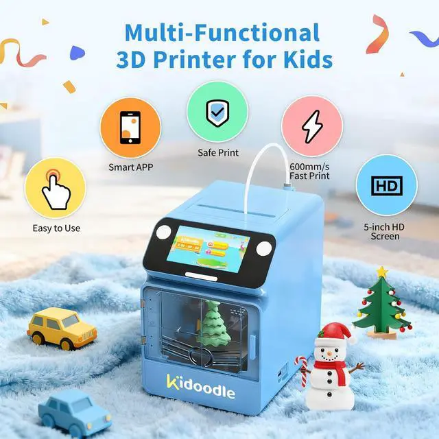 Best Kids 3D Printer: Kidoodle 3D printer designed with kids in mind, easy to set up and use, ready to print right out of the box. With auto-leveling and a user-friendly interface, you can start 3d printing in less than 10 minutes. Effortless 3d printing for kids and families.