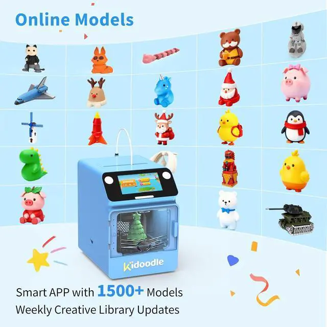 Huge Creative Library of 1500+ Models: Our toy 3D printer includes a massive library of models and modules, weekly creative library updates, offering endless creative 3d printing. The smart app is incredibly easy to use, perfect for kids explore and print toys.