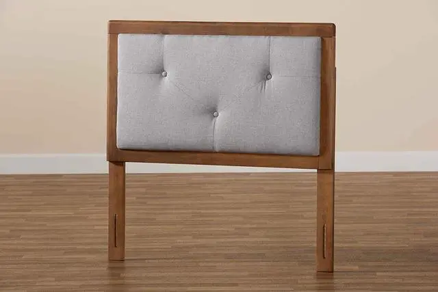 Craft your bedroom into an elegant retreat with the Abner headboard. Made in Malaysia, this headboard is constructed from sturdy wood showcasing a warm walnut brown finish. Plush layers of foam underneath smooth fabric provide superb support for you to lean against as you sit in bed. Requiring assembly, the Abner features six pre-drilled holes in its legs that offer five unique height configuration options. Zigzag button tufting creates a distinguished display, making the Abner headboard a fantastic upgrade to any bedroom.