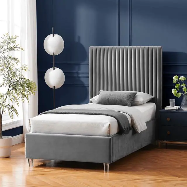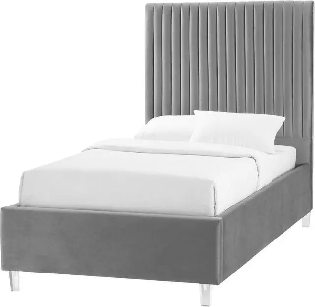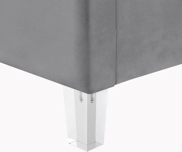 Experience the epitome of modern glamour with our Upholstered Velvet Channel Tufted Bed with Acrylic Legs. Crafted with a combination of velvet, solid wood, manufactured wood, foam, and acrylic, this bed exudes luxury and style. The deep channel tufted design adds a touch of sophistication, while the clear acrylic legs create a contemporary look. With a weight capacity of 662 lbs, this bed offers durability and sturdiness. Assembly is a breeze with the included slat kit, eliminating the need for a box spring. Designed for the bedroom, this bed seamlessly blends modern and contemporary styles, making it a stylish and practical choice. Upgrade your sleeping space with this elegant and comfortable upholstered bed. Available in Twin XL, Full, Queen, and King sizes.