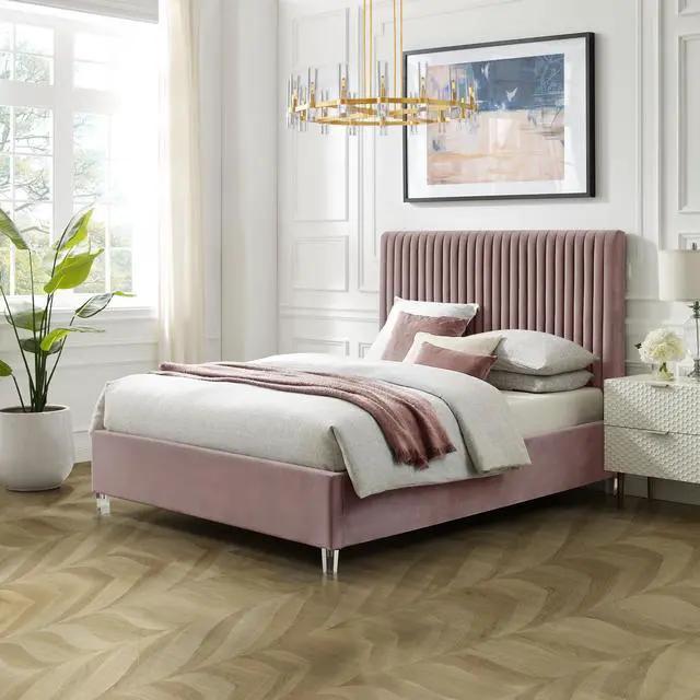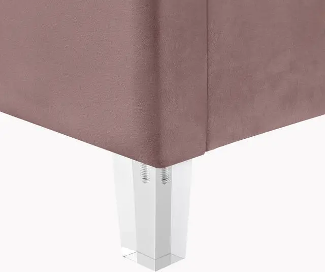 Experience the epitome of modern glamour with our Upholstered Velvet Channel Tufted Bed with Acrylic Legs. Crafted with a combination of velvet, solid wood, manufactured wood, foam, and acrylic, this bed exudes luxury and style. The deep channel tufted design adds a touch of sophistication, while the clear acrylic legs create a contemporary look. With a weight capacity of 662 lbs, this bed offers durability and sturdiness. Assembly is a breeze with the included slat kit, eliminating the need for a box spring. Designed for the bedroom, this bed seamlessly blends modern and contemporary styles, making it a stylish and practical choice. Upgrade your sleeping space with this elegant and comfortable upholstered bed. Available in Twin XL, Full, Queen, and King sizes.