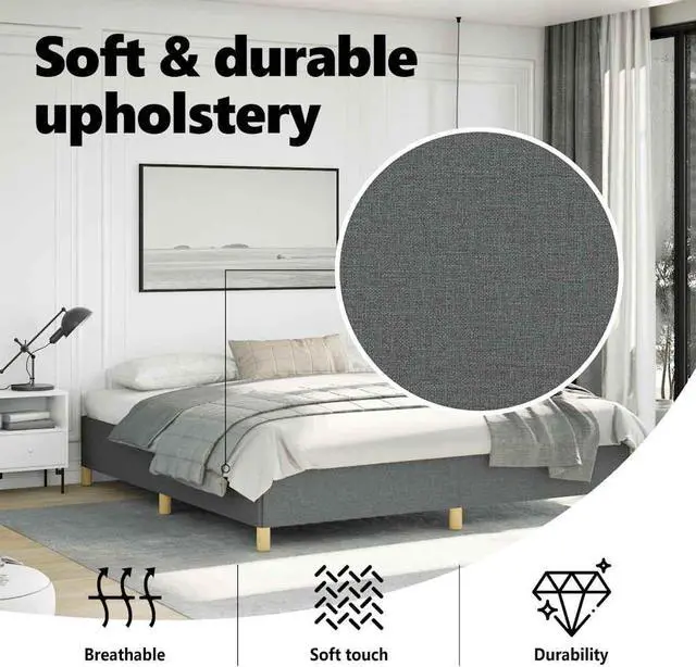 • Sturdy construction: Designed with a durable frame and strong support legs, this upholstered bed frame offers lasting stability and strength.