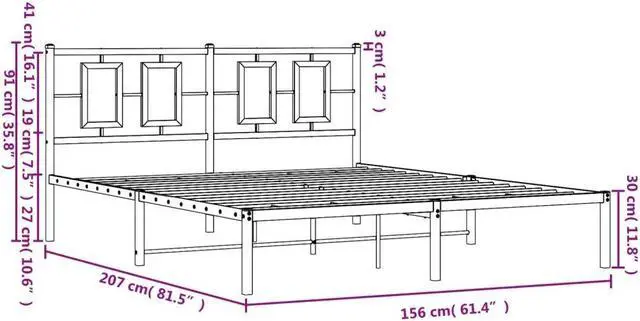 Metal slats and legs: The metal bed frame is complete with metal slats and center legs to provide your mattress with much-needed support and breathability.