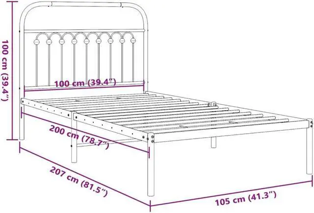 Overall bed dimensions: 81.5" x 41.3" x 39.4" (L x W x H)