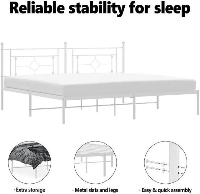 Metal slats and legs: The metal bed frame is complete with metal slats and center legs to provide your mattress with much-needed support and breathability.
