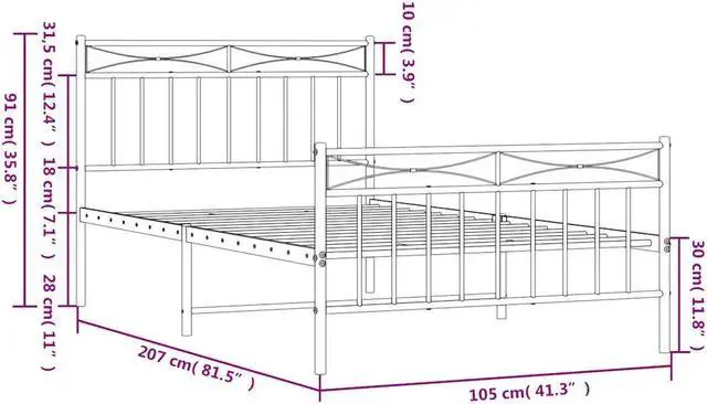 Robust metal construction: The bed frame is made from powder-coated steel. Steel is an exceptionally hard and strong material that offers exceptional sturdiness and stability.