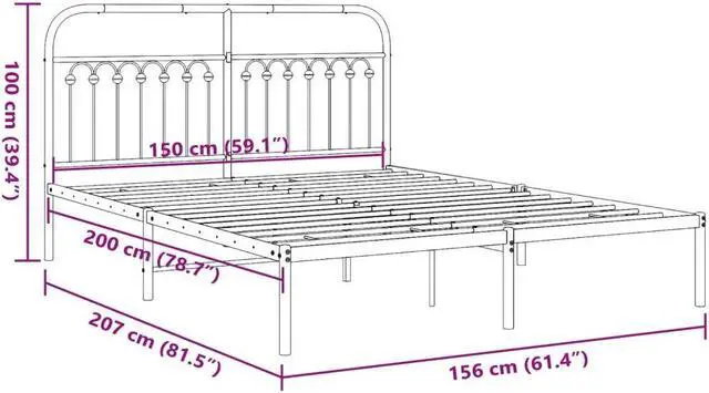 Overall bed dimensions: 81.5" x 61.4" x 39.4" (L x W x H)