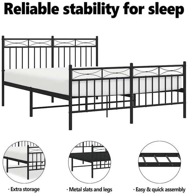 Metal slats and legs: The metal bed frame is complete with metal slats and center legs to provide your mattress with much-needed support and breathability.