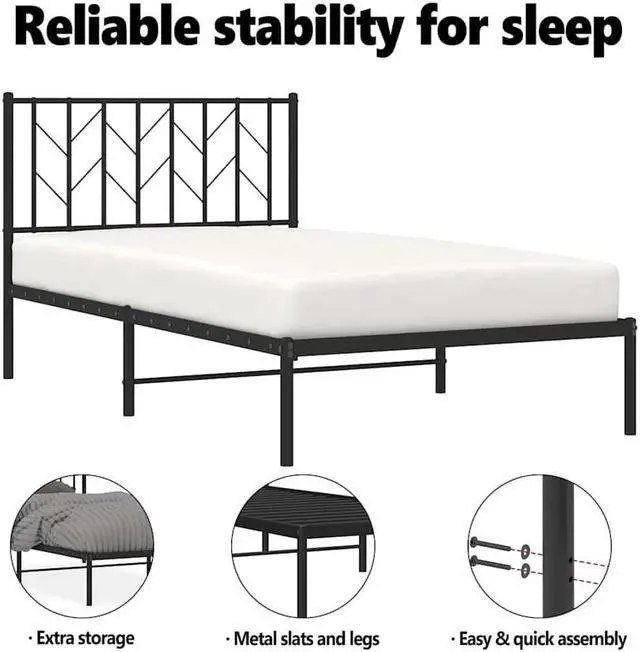 Metal slats and legs: The metal bed frame is complete with metal slats and center legs to provide your mattress with much-needed support and breathability.