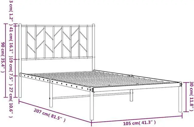 Robust metal construction: The bed frame is made from powder-coated steel. Steel is an exceptionally hard and strong material that offers exceptional sturdiness and stability.